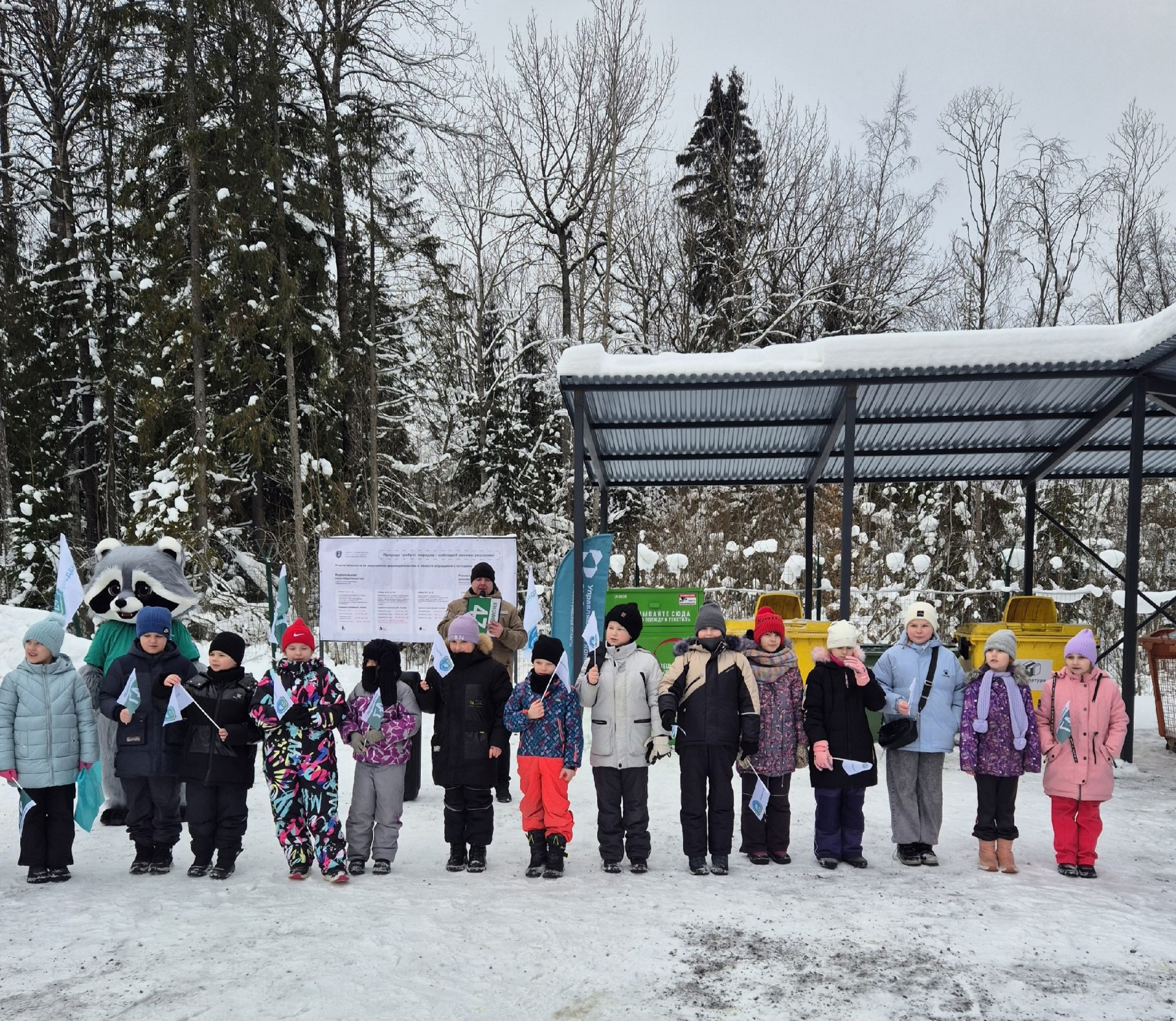 На торжественном открытии контейнерной площадки в Семрино присутствовали не только ключевые участники мероприятия, но и ученики семринской школы, которые были приняты в эколята и получили от регоператора вкусный подарок и игрушку.