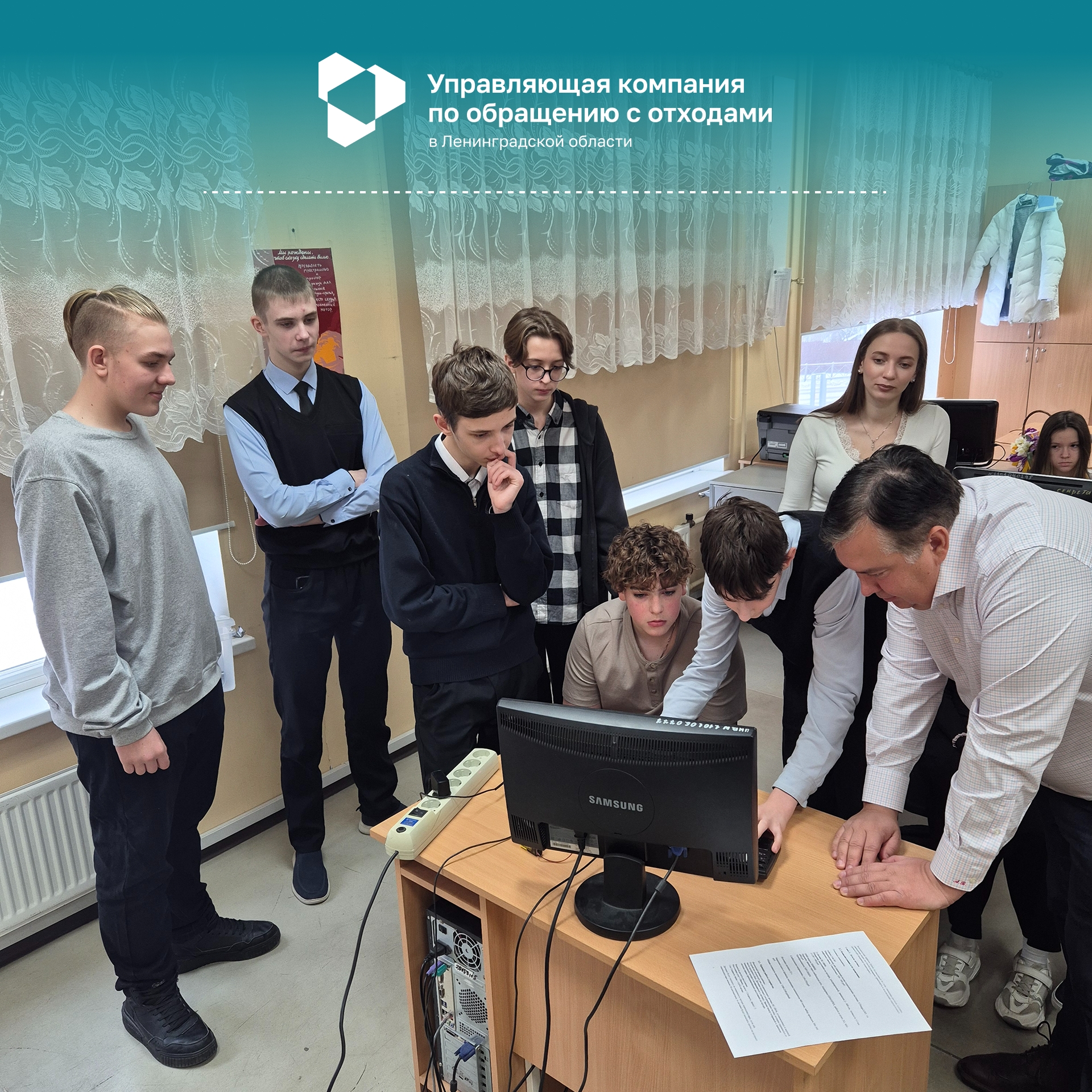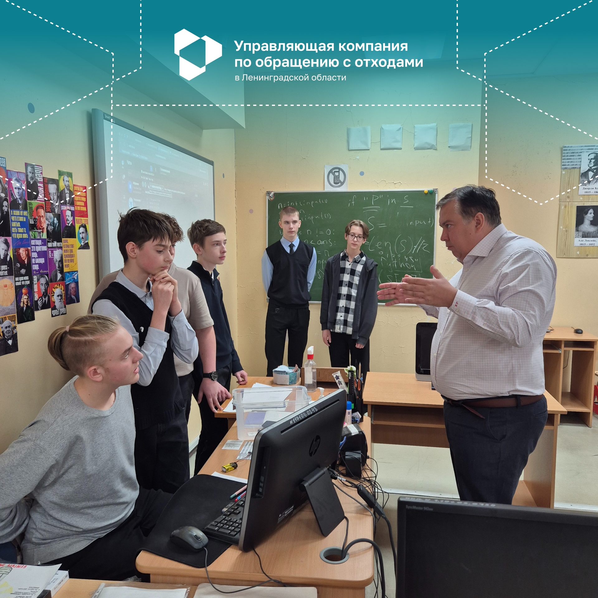 На прошедшей неделе Бучнев Антон Геннадьевич, генеральный директор АО “УК по обращению с отходами в ЛО”, получил приглашение посетить презентацию проекта «Создание датчика для определения заполненности мусорного бака». Тема проекта невероятно интересная, но что ещё более интригующее в данном проекте, так это то, что создал его 8 “А” класс Школа № 13 г. Выборг под руководством учителя информатики Стамати Емилии Петровны.